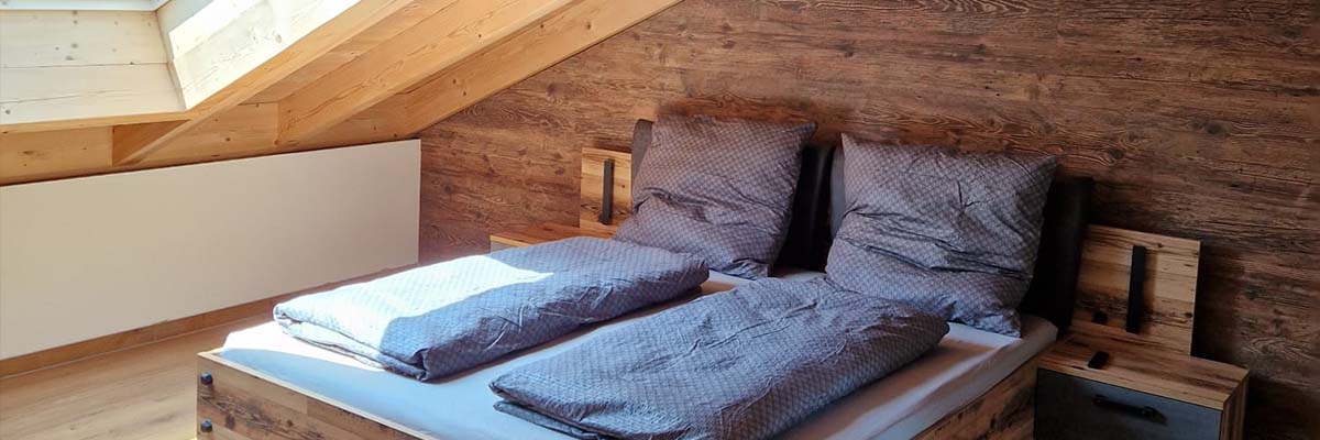 - stilvolle Schlafzimmer unter sichtbaren Holzbalken